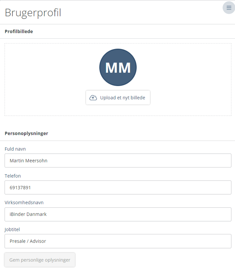 Under fanen "Brugerprofil" kan du indsætte et profilbillede og ændre dine personlige oplysninger.
