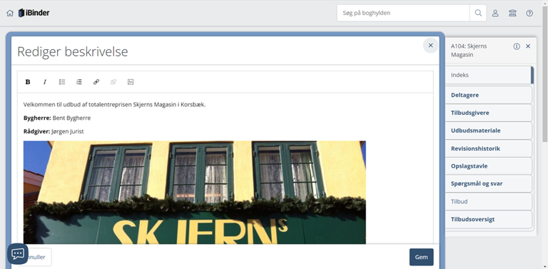 Du kan ændre den beskrivelse som deltagere og tilbudsgivere møder når de åbner dit udbud.