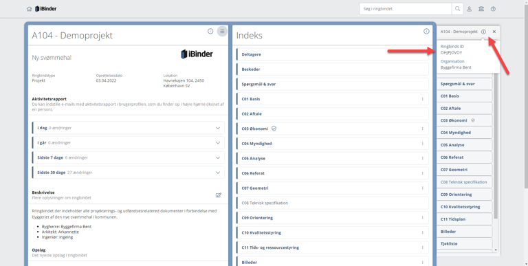 Det kan desuden lette sagstiden hvis du oplyser ringbinds ID på de pågældende projekter