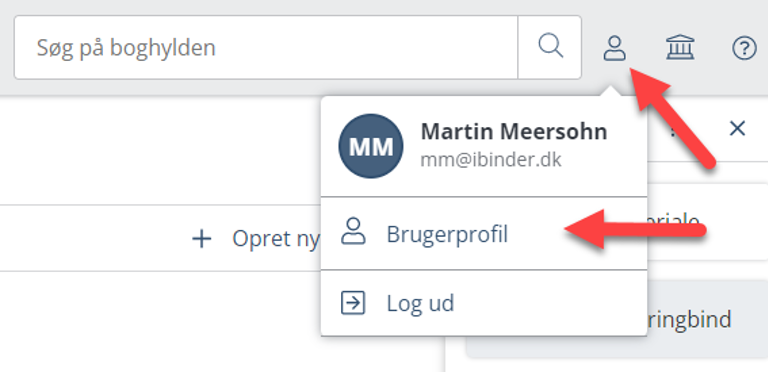 Klik på ikonet som vist nedenfor og dernæst på "Brugerprofil"