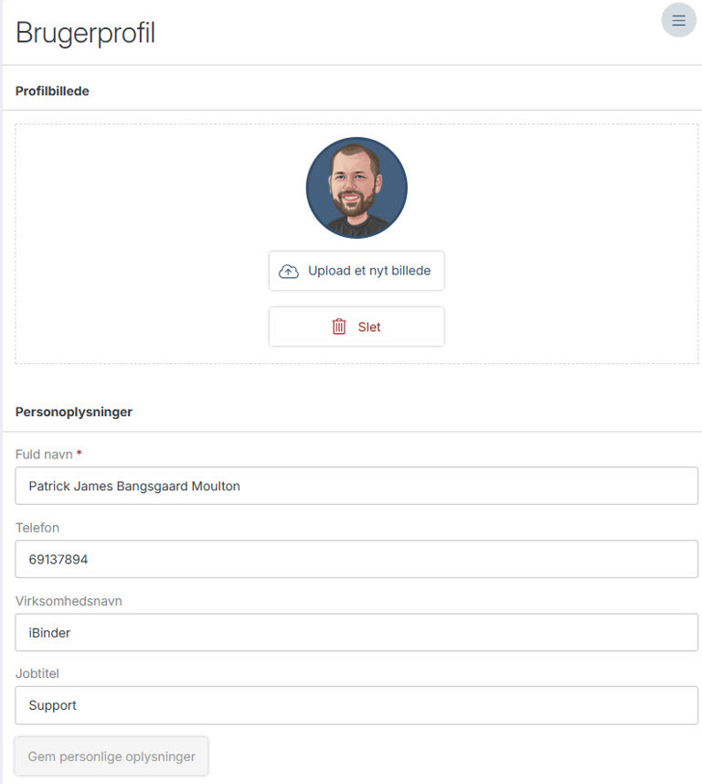 Du kan ændre dine personlige oplysninger under din brugerprofil.
