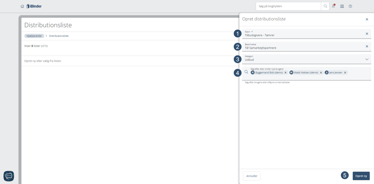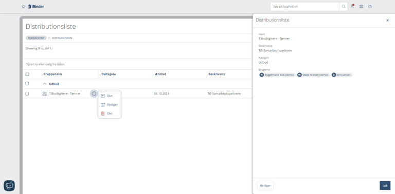 Man kan med rollen "ejer" og "administrator" oprette og redigere distributionslister, som de øvrige kollegaer og samarbejdspartnere i projekter og udbud kan benytte til at invitere faste samarbejdspartnere ind med.