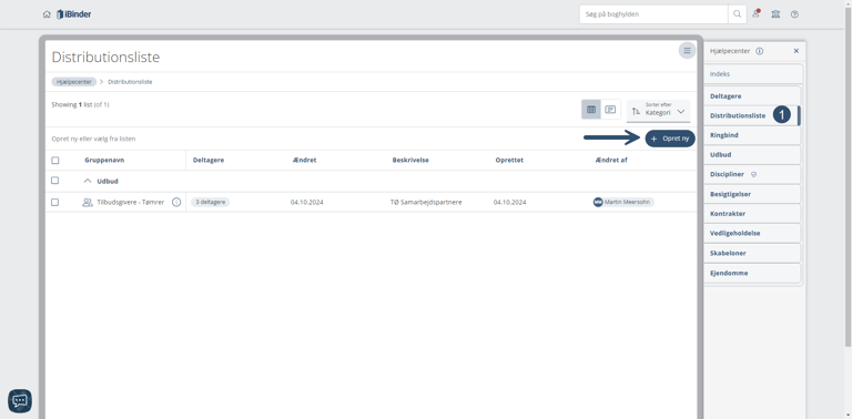 Klik på fanen "Distributionsliste" og dernæst "+ Opret ny" for at oprette en liste.