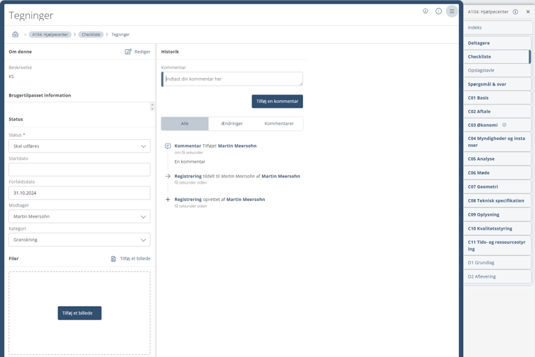 For at anvende checklisten skal I først sikre, at I har en fane, med typen "Checkliste".