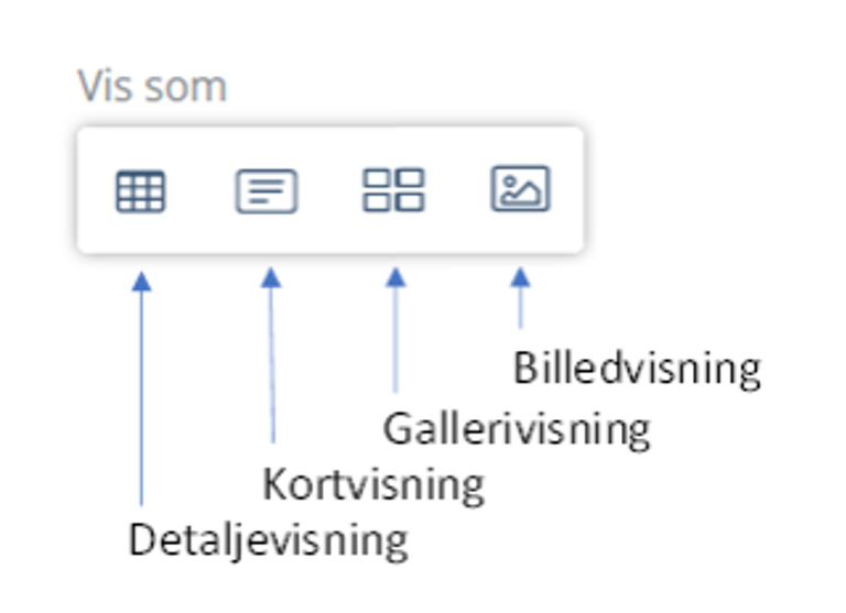 Der er i iBinder fire dokumentvisningstilstande, foruden de visninger der opnås når en fil åbnes op i den indbyggede viewer. Når du klikker ind på et faneblad med filer, vil du derfor øverst til højre kunne vælge en af de nedenstående visninger.