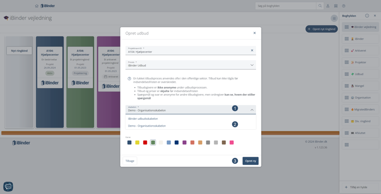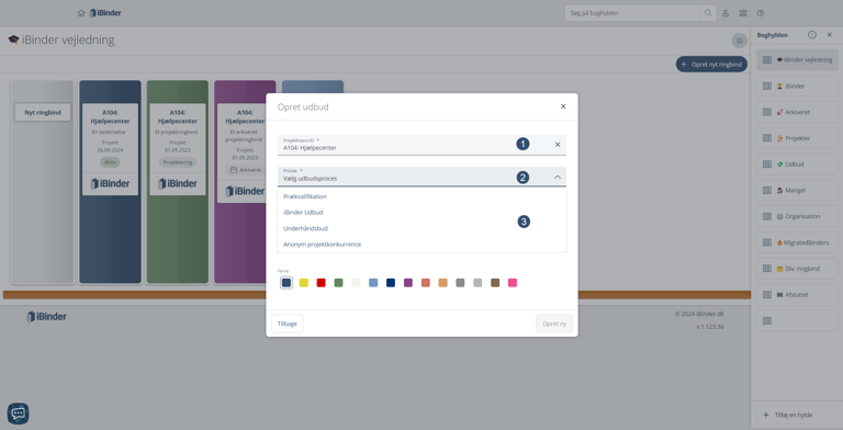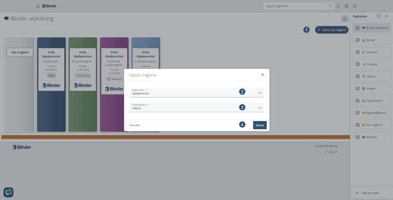 Vælg "Udbud" i dropdown-menuen ”Ringbindstype”, inden du klikker på "Næste".