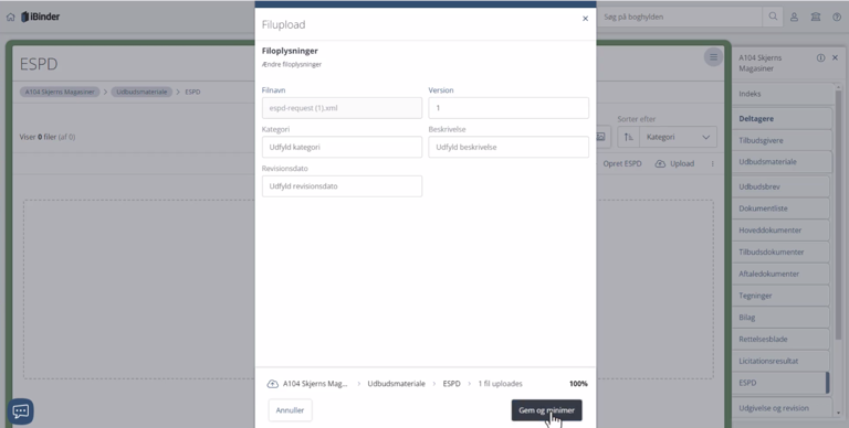 Selvsamme fil(er) der generes, skal uploades og tilgængeliggøres for tilbudsgiverne, så de kan tage afsæt i den ved udarbejdelsen af deres egen.