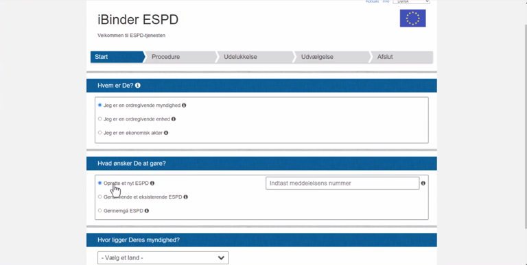 Hvis du ikke har anvendt en skabelon med fanen "ESPD" er det her du opretter den.