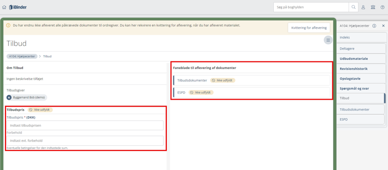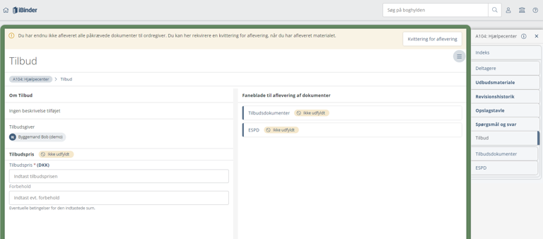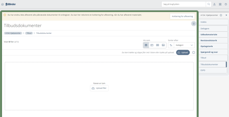 Inden afleveringsfristen kan du uploade dit tilbud, ved at tilgå fanen "Tilbud".