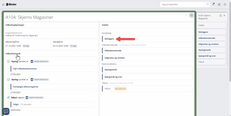 Under fanen "Deltagere", kan man som tilbudsgiver tilføje og slette samarbejdspartnere.