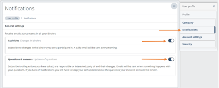 Subscribe to changes made in binders where you are a participant. Daily emails are sent every morning.