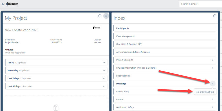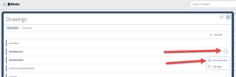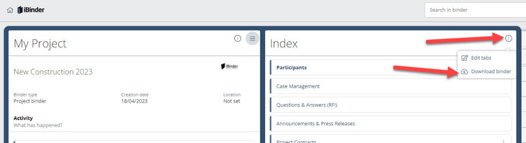 You can also download a whole binder if you have administrator rights by clicking as follows:
