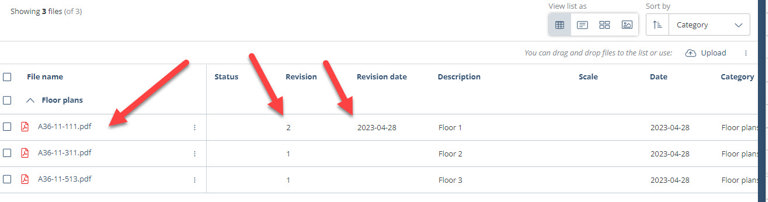 The latest version is always shown in the file view, as well as which version it is and the revision date.