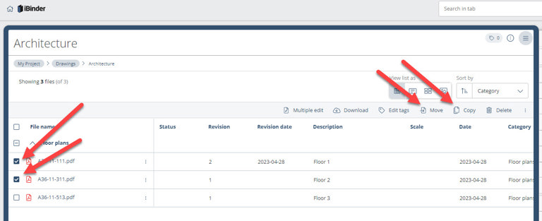 Select the files you want to move/copy. Click "Move" or "Copy" in the light-grey bar.