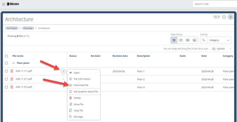 Click on the 'dots' to the right of the file name, and then select 'Download file':