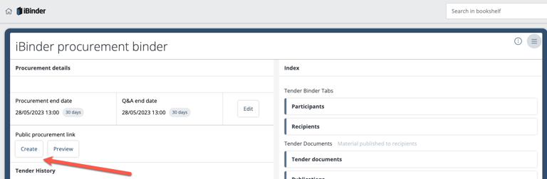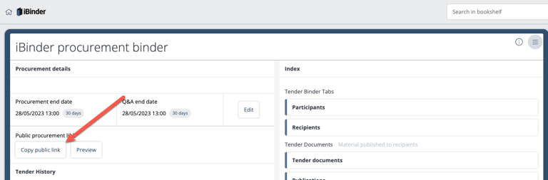 A public link can be used to easily publish the procurement binder in e.g. EU Supply or similar.