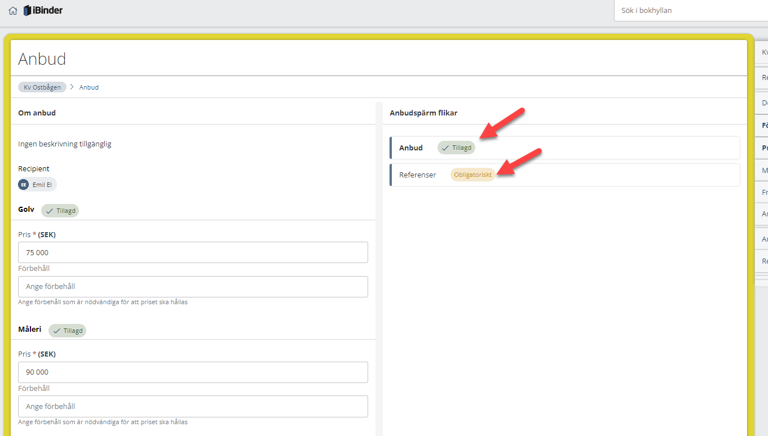 Det kan være at oppdragsgiveren har valgt å ha flere faner. I så fall må dokumentene lastes opp i hvert faneblad for at anbudet skal godtas for innlevering.