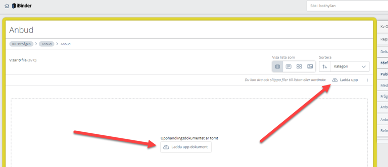 Klikk deretter på "Last opp" eller "Last opp dokument" og velg anbudsdocumentene som skal lastes opp.