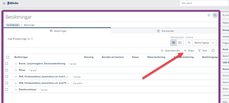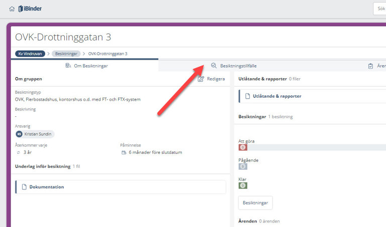Öppna fanen "Besiktninger" og klikk på "+ Opprett":