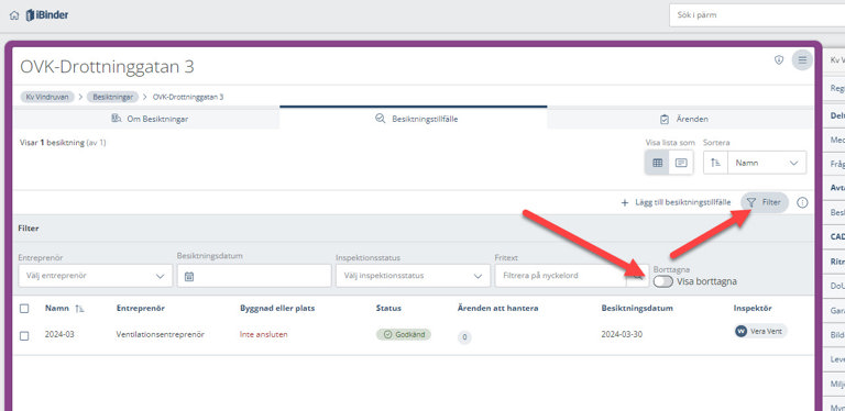 Les om hvordan du kan gjenopprette en slettet besiktning.