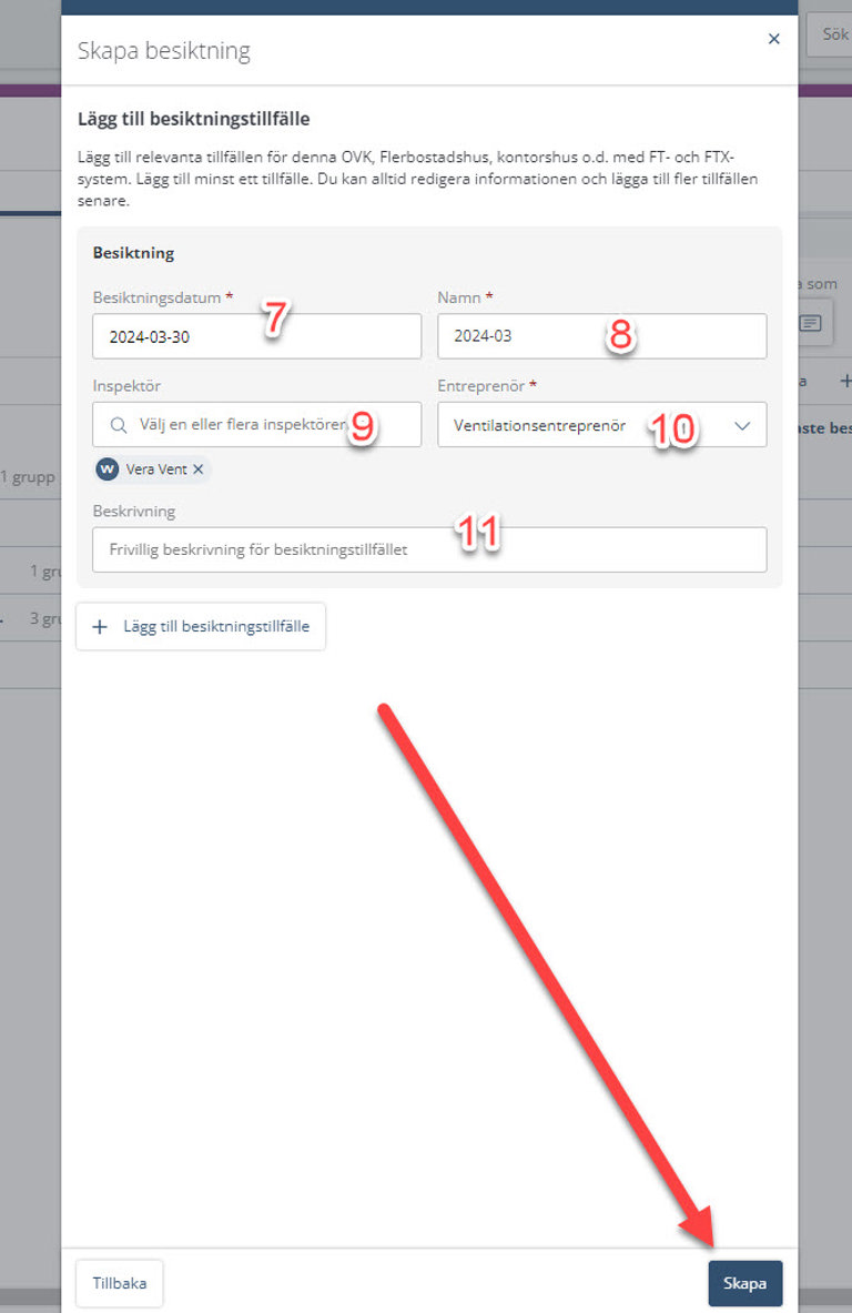 7) Besiktningsdato - angi dato når besiktningen skal utføres.