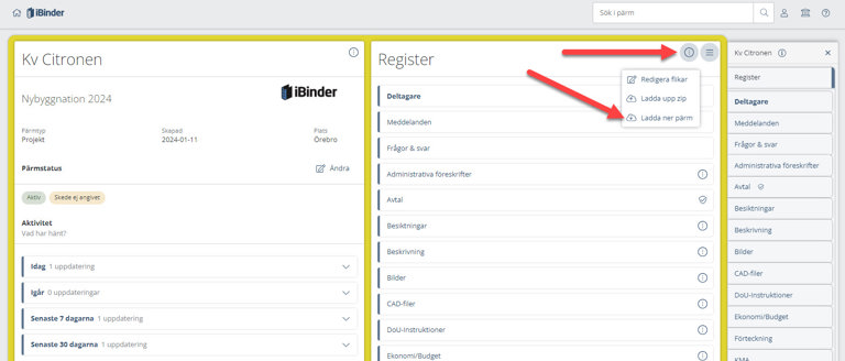 Fortsätt att samarbeta kring befintligt material i pärmen. Använd funktionalitet såsom Frågor & Svar, Besiktningar och Ärendehantering. Nya filer kan inte laddas upp till pärmen.