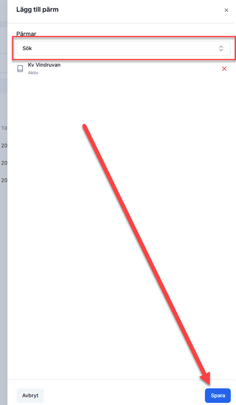 Sök upp pärmen i listan och klicka sedan på Spara.