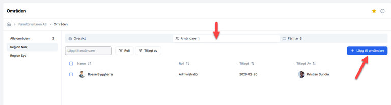 Klicka på + Lägg till användare för att lägga till nya användare.