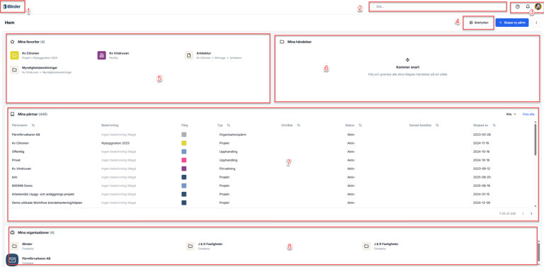 1) Klicka på iBinder-loggan vart man än befinner sig i systemet för att direkt komma tillbaka till hem-vyn.